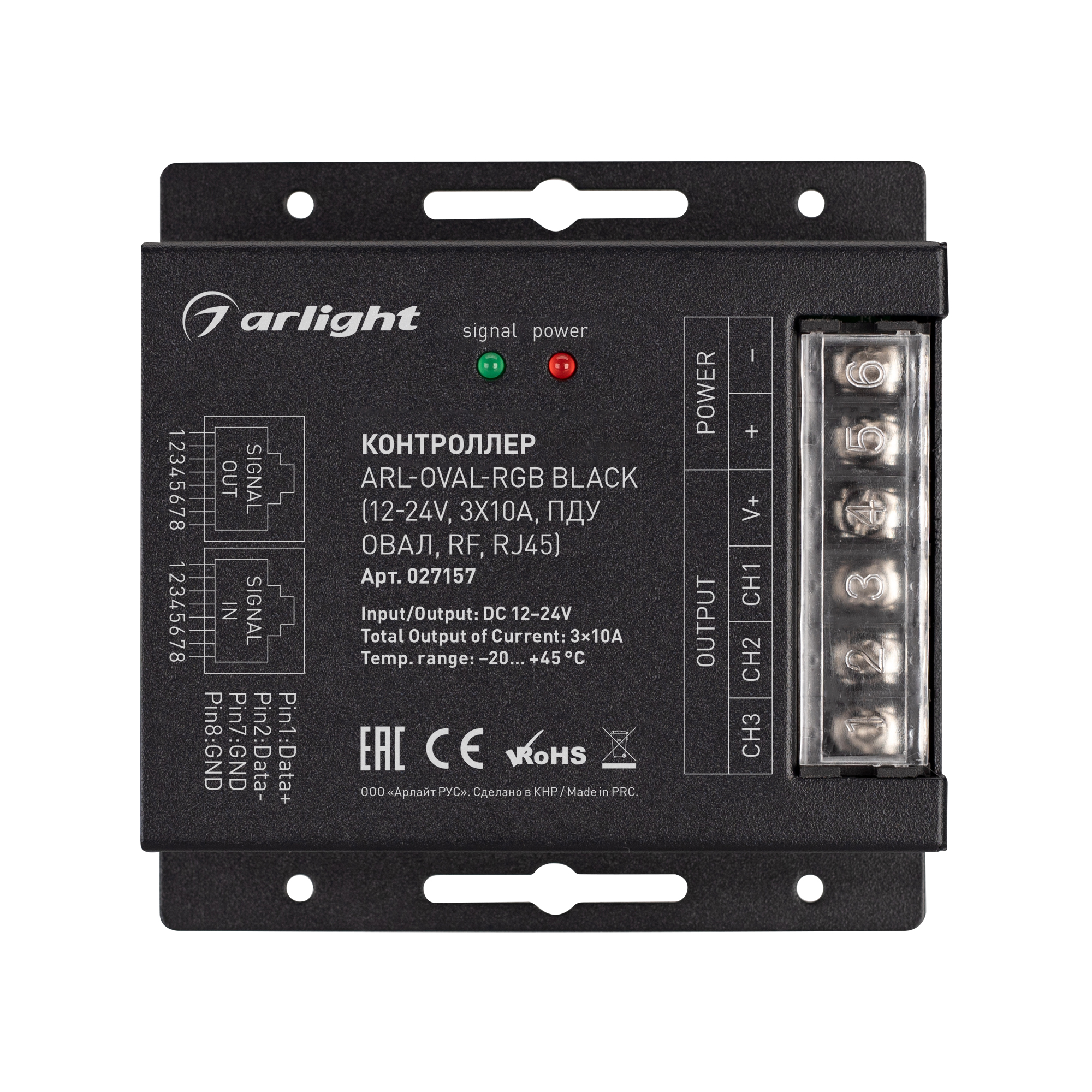 Контроллер ARL-OVAL-RGB Black (12-24V, 3x10A, ПДУ Овал, RF, RJ45) (Arlight, IP20 Металл, 3 года)