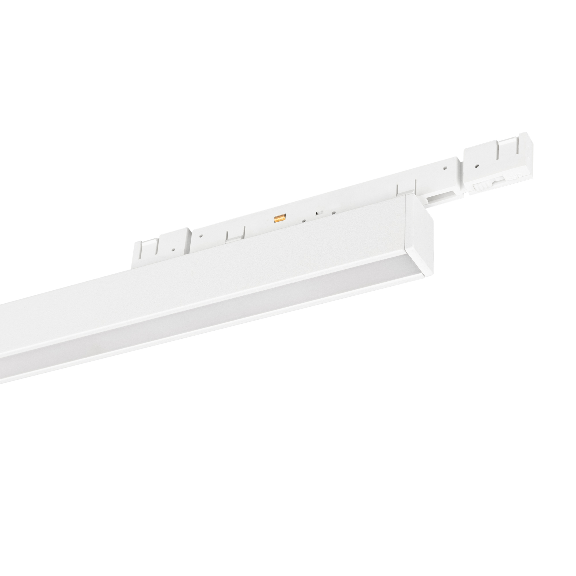Светильник для магнитных треков MAG-MICROCOSM шириной 11 мм. Мощность 20 Вт, св. поток 977 лм, 46 лм/Вт, дневной 4000 K, CRI>90, угол 100°, напряжение питания 24 В. Белый фигурный корпус из алюминия, экран поликарбонат, степень защиты IP20. Габариты общие: 640,5х12х29,2 мм. Размер светодиодной части: 588х112х16,2 мм. Монтаж на трек MICROCOSM. Пульсация <1%.