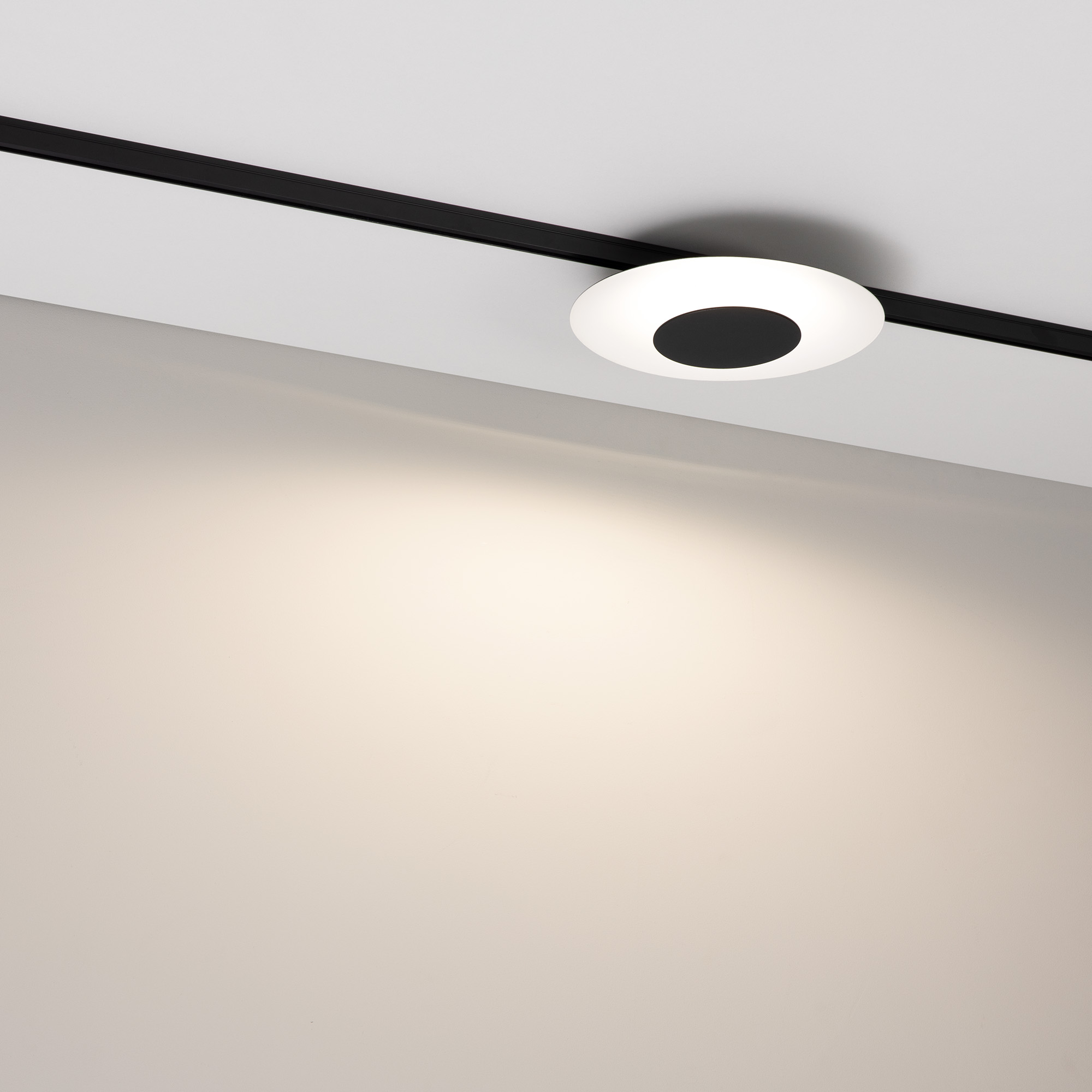 Светильник для магнитных треков MAG-MICROCOSM шириной 11 мм. Мощность 7 Вт, св. поток 325 лм, 49 лм/Вт, дневной 4000 K, CRI>92, угол 150°, напряжение питания 24 В. Белый фигурный корпус из алюминия, экран поликарбонат, степень защиты IP20. Габариты общие Ø170 х 37,3 мм. Габариты светового модуля Ø80,3 х 25,7 мм. Габариты отражателя Ø170 x 18,4 мм Габариты адаптера 110 х 5 х 11,6 мм. Монтаж на трек MICROCOSM. Пульсация <1%.
