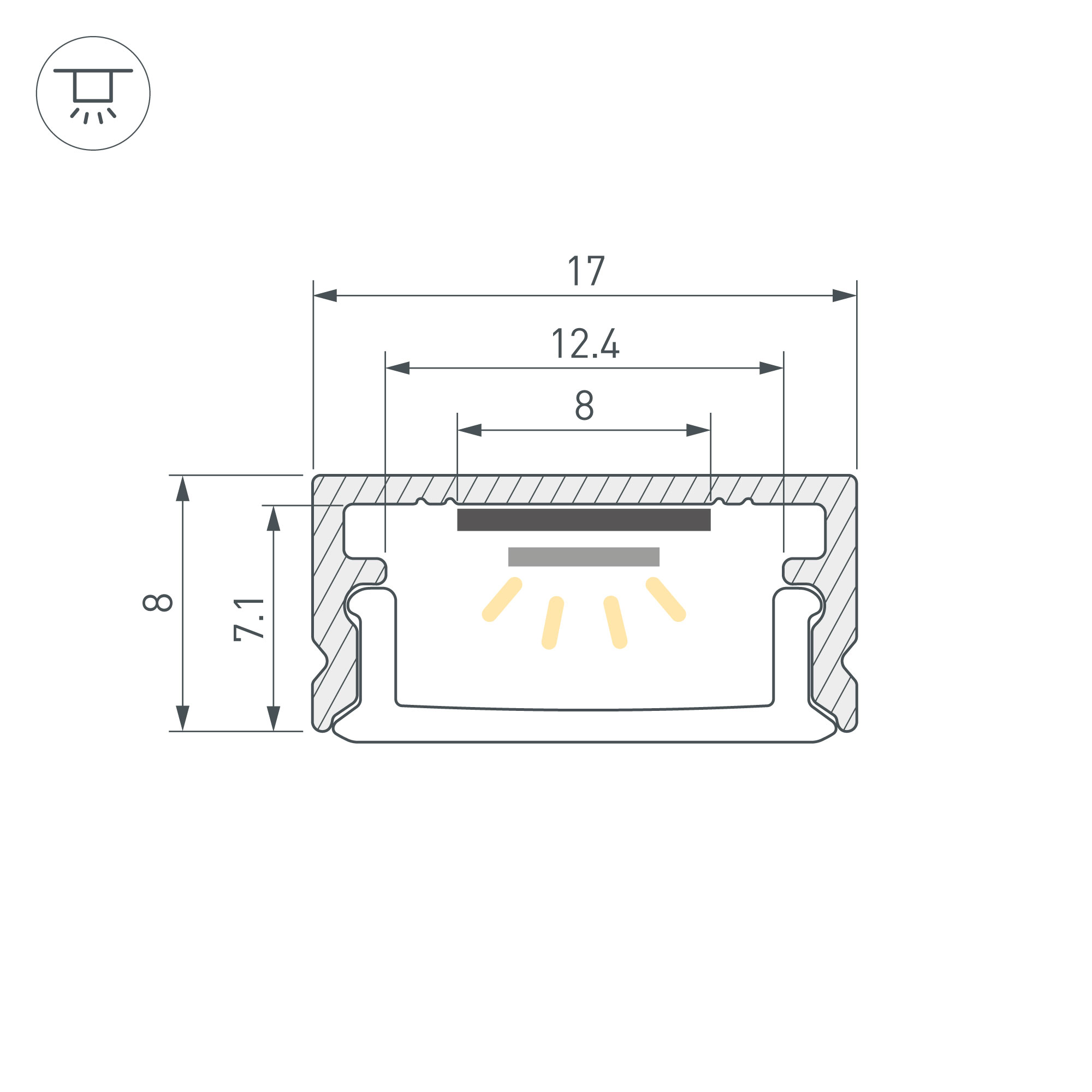 Набор для светодиодной подсветки ARL-KIT-SLIM с предустановленной светодиодной лентой. В комплект входят: алюминиевый анодированный профиль 2000 мм, матовый экран 2000 мм, пластиковые глухие заглушки - 2 шт., заглушки с кабелем 1 метр и разъёмом 5.5 DC Female - 2 шт., металлические держатели - 4 шт., шурупы - 4шт., светодиодная лента со свободной резкой. Габаритные размеры (L×W×H): 2000x17x8 мм. Светодиодная лента со свободной резкой, открытая IP20. Светодиоды SMD 2216, 200 шт/м (400 шт на 2 м). Цвет ТЕПЛЫЙ 3000K, цветопередача CRI>90, угол 120°. Питание 24 В, мощность 14 Вт/м (28 Вт на 2 м). Мин.отрезок 5 мм, 1 светодиод. Для создания из набора одного светильника необходимо использовать одну глухую заглушку и одну заглушку с кабелем 1 метра и разъёмом 5.5DC Female. При необходимости отрежьте часть профиля необходимой длины (минимальный отрезок – 5 мм). Разрезать ленту необходимо только в обозначенных местах, отступив от края профиля на 3-5 мм строго по линии резки.