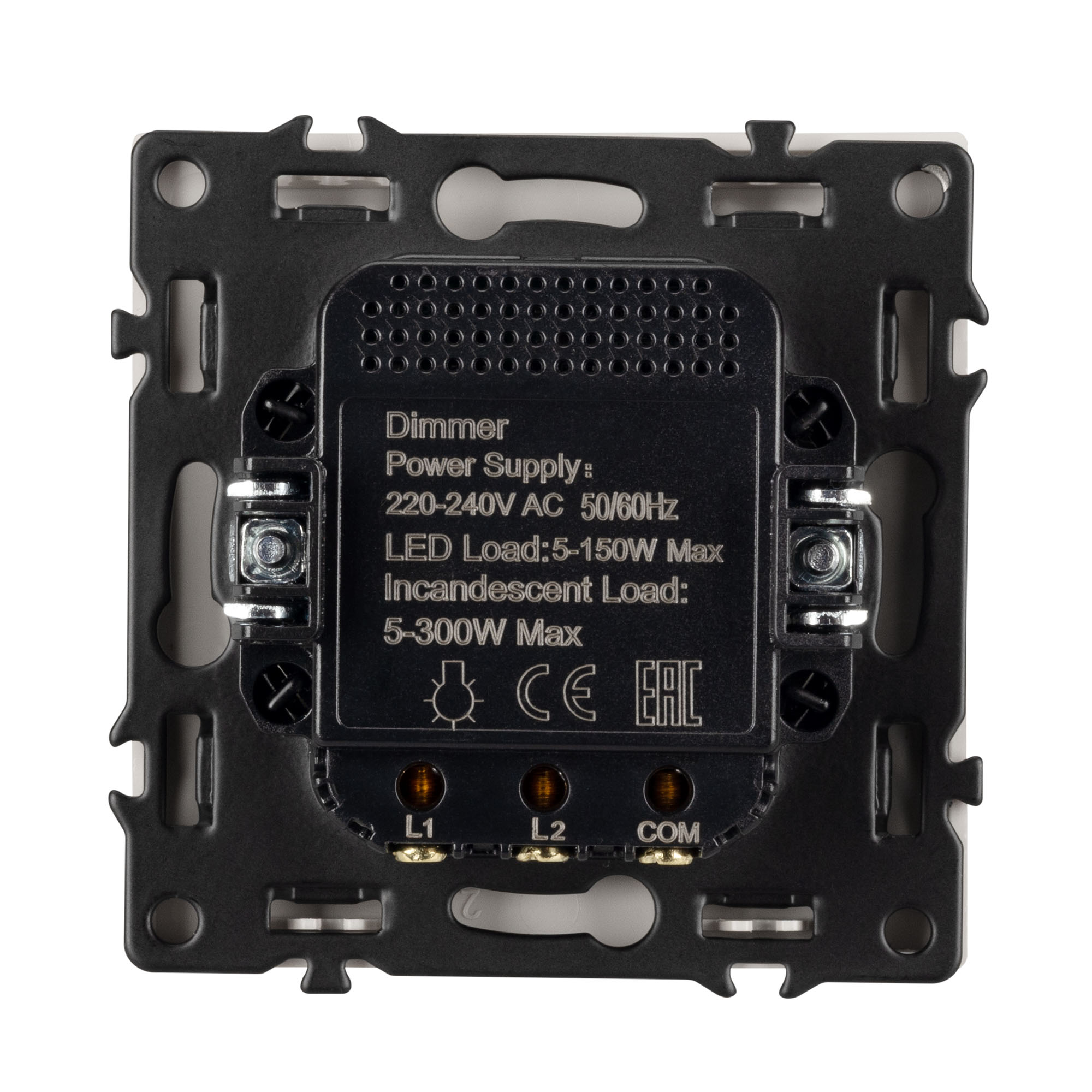Механизм светорегулятора на 1 пост. Цвет - черный оникс, с Soft-Touch покрытием. Без фронтальной рамки. Уровень пылевлагозащиты IP20. Устанавливается в стандартный подрозетник круглого сечения диаметром 60мм. Максимальная выходная мощность 300Вт. Габаритные размеры: длина 71 мм, ширина 71 мм, высота 55 мм. Гарантийный срок 10 лет.