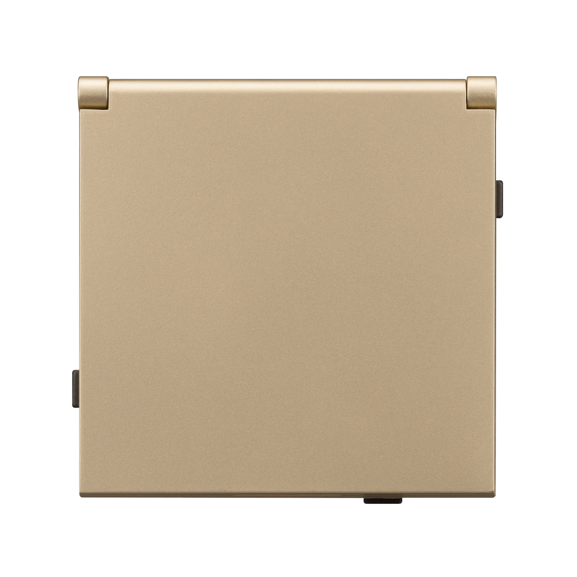 Механизм розетки с заземлением и влагозащитной крышкой совместим с рамками серии TENDO, создает утонченный минималистичный вид. Скрытый тип монтажа позволяет гармонично встроить в интерьер любого современного дизайн-проекта. Видимая часть механизма выполнена из высококачественного пластика золотого цвета и имеет покрытие Soft-Touch. Розетка оснащена защитными шторками, которые защищают механизм устройства от повреждений и загрязнений, а также обеспечивают безопасное использование для каждого пользователя. Наличие влагозащитной крышки позволяет размещать данный тип розеток в ванных комнатах, санузлах, кухнях или МОП. Металлический суппорт окрашен порошковой краской в несколько слоев и выполнен из металла толщиной 1,5мм, что обеспечивает безопасность и уверенность в установке. А усиленные распорные (монтажные) лапки надежно фиксируют механизм в стандартном установочном подрозетнике. На каждой стороне суппорта размещены фиксирующие элементы, позволяющие комбинировать механизмы в системы до 5шт как горизонтально, так и вертикально, под соответствующую рамку.