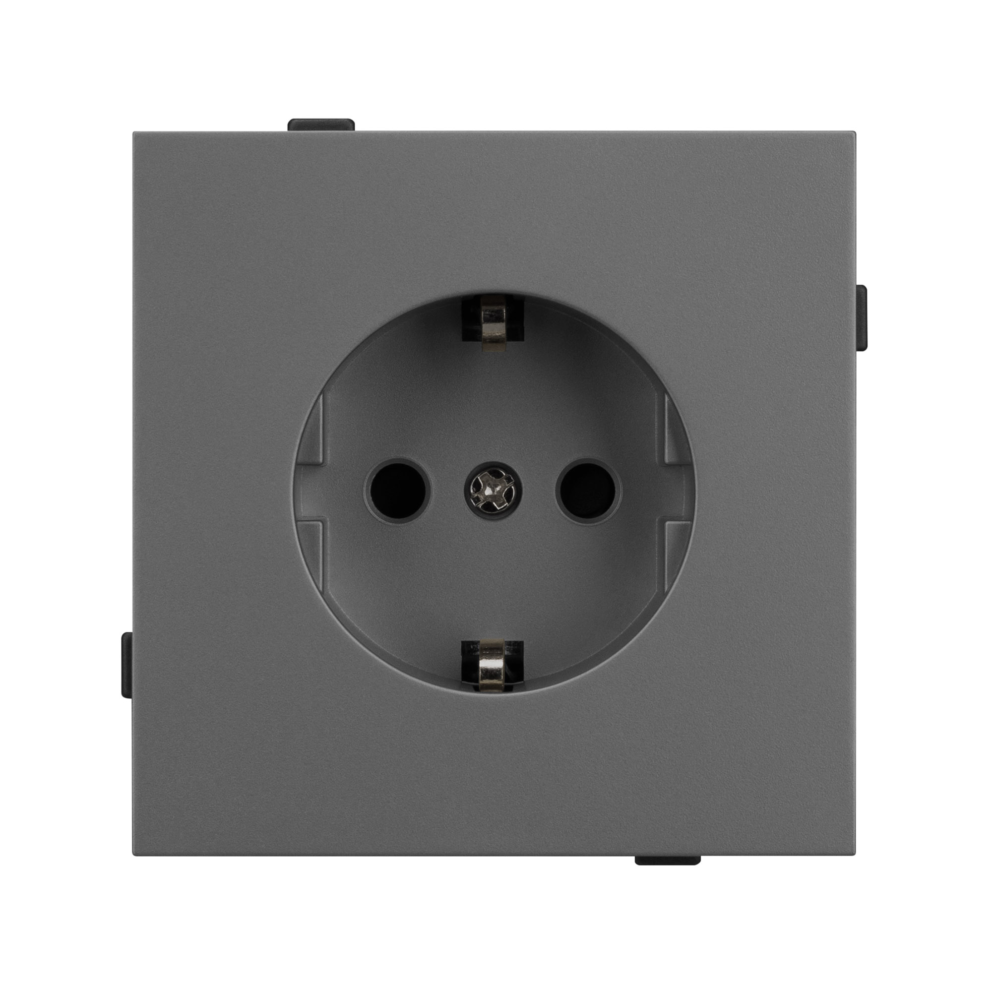 Механизм розетки с заземление совместим с рамками серии TENDO, создает утонченный минималистичный вид. Скрытый тип монтажа позволяет гармонично встроить в интерьер любого современного дизайн-проекта. Видимая часть механизма выполнена из высококачественного пластика серого цвета и имеет покрытие Soft-Touch. Розетка оснащена защитными шторками, которые защищают механизм устройства от повреждений и загрязнений, а также обеспечивают безопасное использование для каждого пользователя. Металлический суппорт окрашен порошковой краской в несколько слоев и выполнен из металла толщиной 1,5мм, что обеспечивает безопасность и уверенность в установке. А усиленные распорные (монтажные) лапки надежно фиксируют механизм в стандартном установочном подрозетнике. На каждой стороне суппорта размещены фиксирующие элементы, позволяющие комбинировать механизмы в системы до 5шт как горизонтально, так и вертикально, под соответствующую рамку.