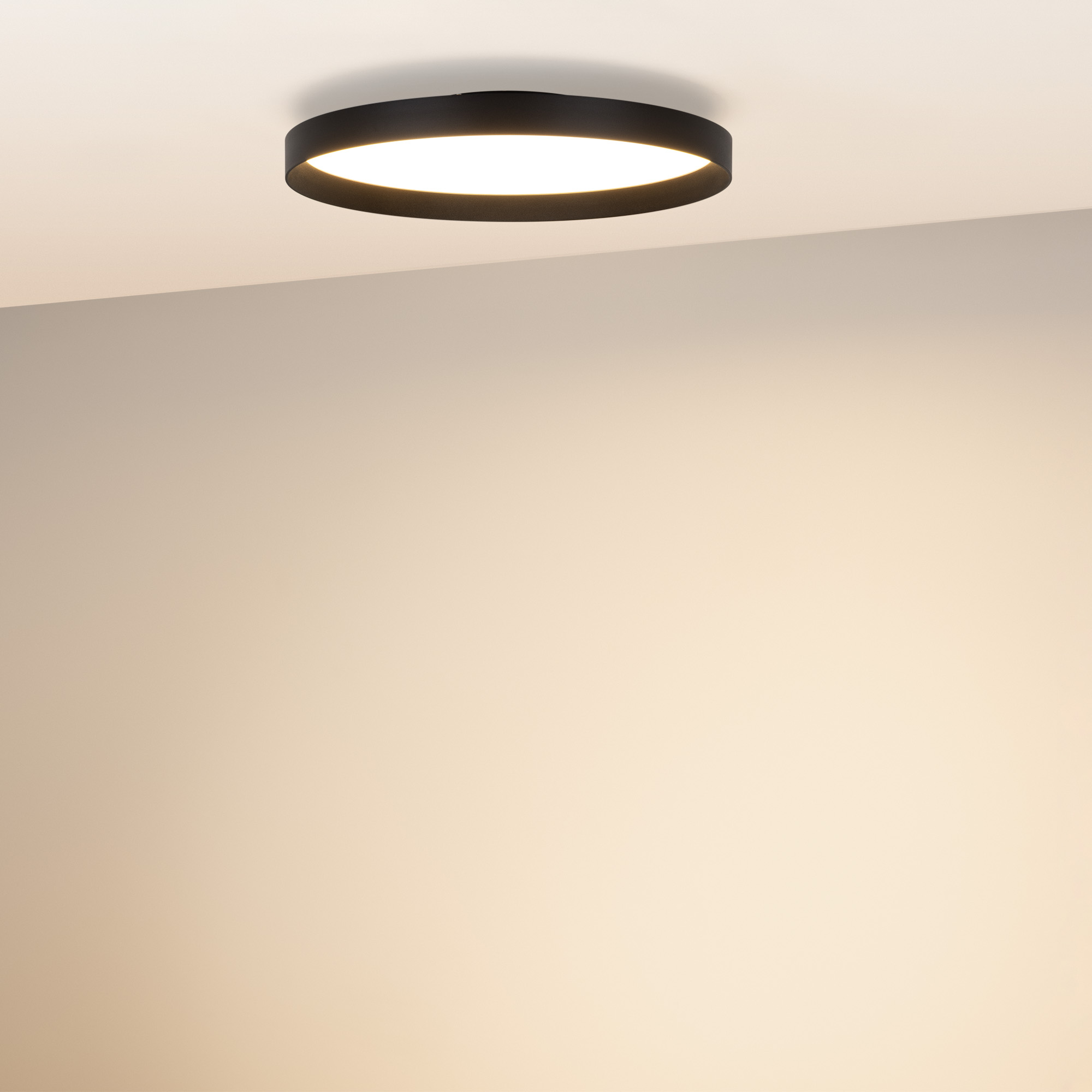 Светодиодный накладной светильник с изменяемой цветовой температурой. Мощность 40 Вт, св. поток 3018-3305 лм, 80-85 лм/Вт, теплый 2700 K, теплый 3300 K, дневной 4000K (переключается), CRI>92, угол 80°, напряжение питания 230 В. Черный круглый корпус из алюминия, матовый призматический экран PC, степень защиты IP20. Размер: Ø 450х70 мм. Размер световой части: Ø 450х39 мм, размер основания: Ø 196х31мм. Монтаж накладной. Драйвер 9-38 В, 1050 мА, пульсация <0,3%. Диммирование TRIAC.