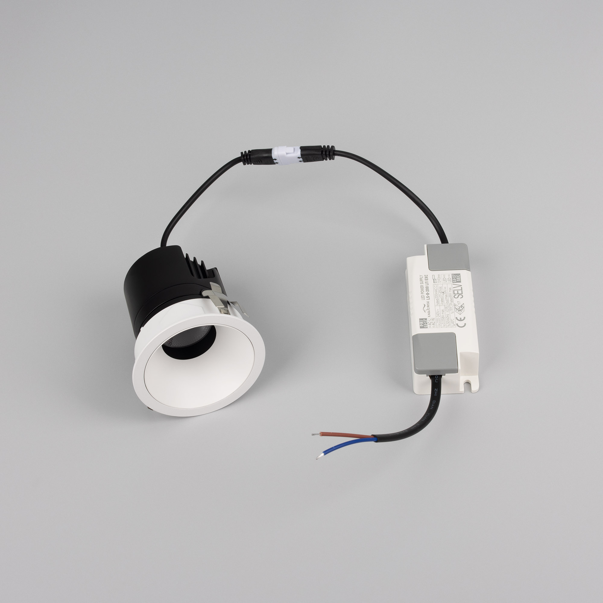 Встраиваемый светильник даунлайт. Мощность 9 Вт, св. поток 710 лм, 78 лм/Вт, теплый 3000 K, CRI>92, угол 24°, напряжение питания 230 В. Белый круглый корпус из алюминия, белый матовый отражатель, степень защиты IP20 . Размер: диаметр 72 мм, высота 76 мм. Монтаж встраиваемый, установочное отверстие: диаметр 65 мм. Драйвер 27-40 В, 200 мА, пульсация <0,5%.