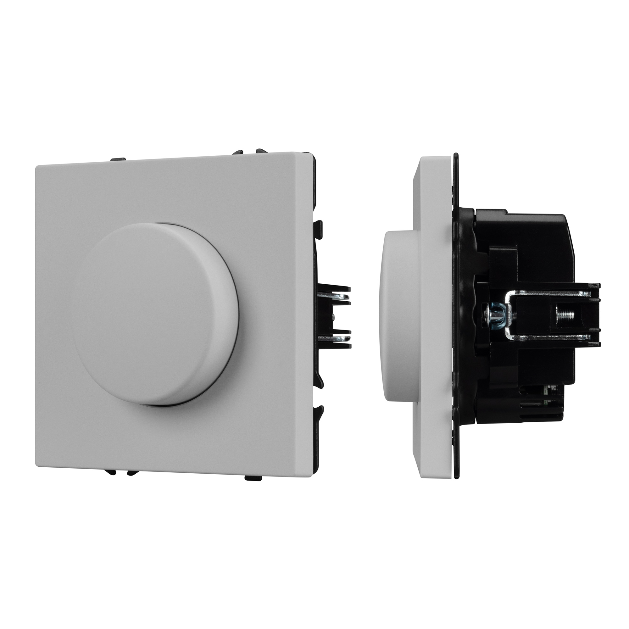 Строгие геометрические линии гармонично сочетаются с функциональностью продуманных механизмов, создавая идеальное решение для дизайн-проектов, где важны эстетика и практичность. Светорегулятор совместим с рамками серии NOBE, создавая утонченный минималистичный вид. Скрытый тип монтажа позволяет гармонично встроить в интерьер любого современного дизайн-проекта. Видимая часть механизма выполнена из высококачественного пластика цвета никель и имеет Soft-Touch покрытие, что придает изделию приятные тактильные ощущения и стильный внешний вид. Настройка интенсивности освещения осуществляется за счет поворотной ручки (ротора). Она позволяет включать, выключать и регулировать свет и его яркость. Светорегулятор предназначен для управления светодиодными (до 150Вт) или другими источниками света (до 300Вт) с напряжением питания 230В. Суппорт окрашен в черный матовый цвет под основу механизма и выполнен из металла толщиной 1,5мм, что обеспечивает безопасность и уверенность в установке. На каждой стороне суппорта размещены фиксирующие элементы, позволяющие комбинировать механизмы в системы до 5шт как горизонтально, так и вертикально.