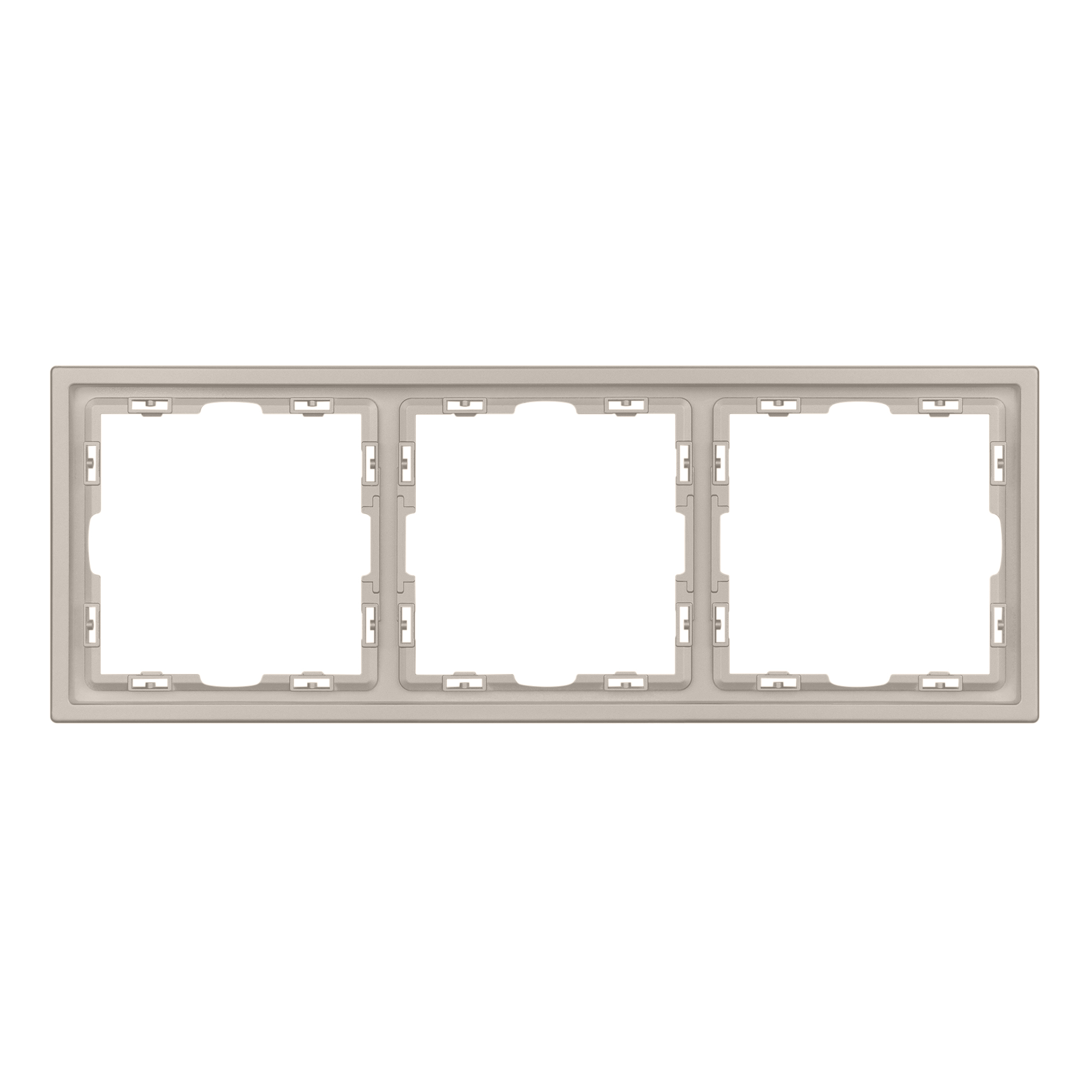 Рамка пластиковая на 3 поста, под встраиваемый механизм. Цвет - кашемир, с Soft-Touch поверхностью. Среднего уровня герметичности IP20. Ориентация монтажа горизонтальная. Габаритные размеры: длина 223 мм, ширина 81 мм, высота 8.55 мм. Гарантийный срок 12 мес.