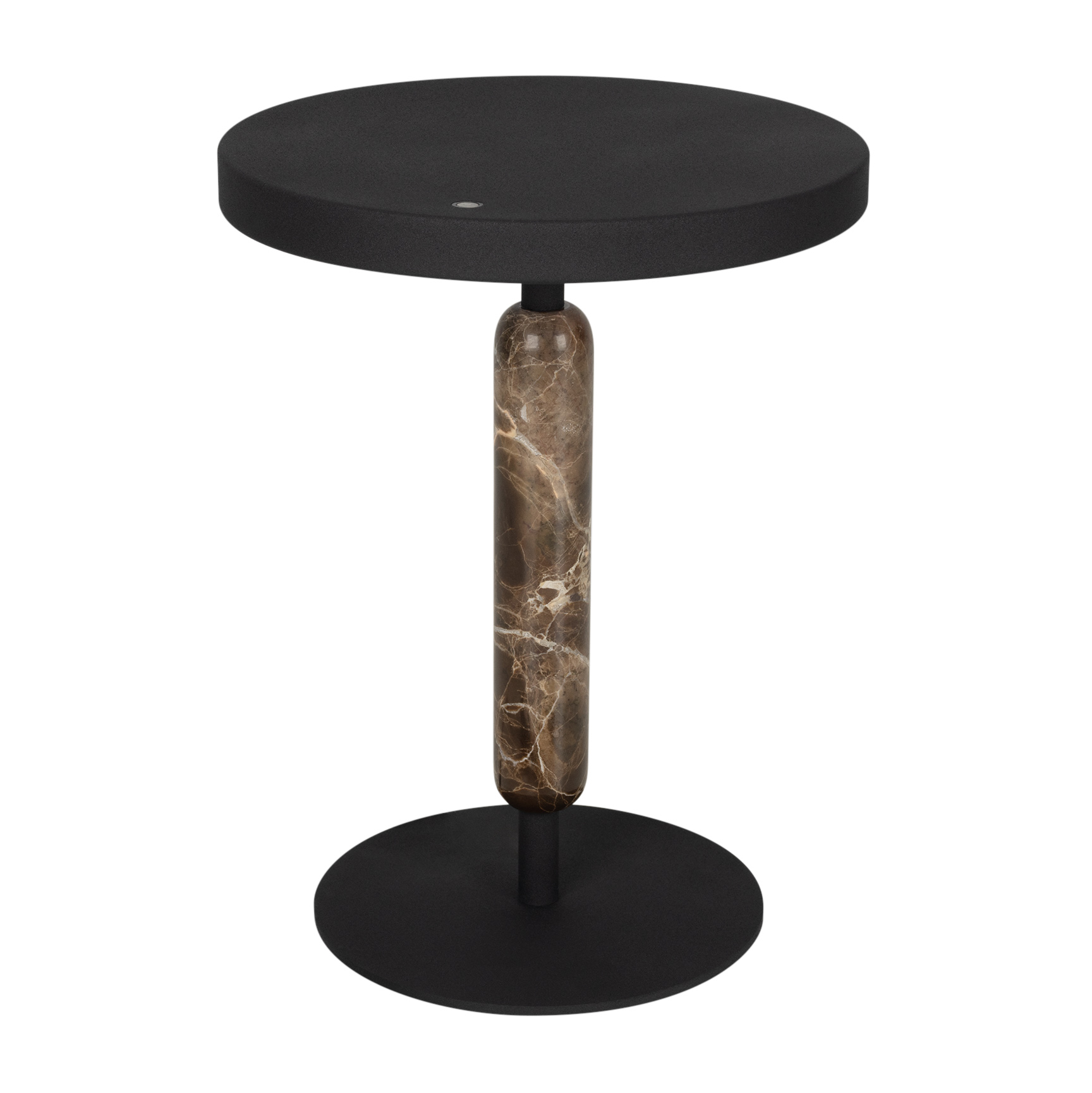 Настольный светильник ALYSS. С изменяемой цветовой температурой 2700/3200/4000К, переключается коротким нажатием на сенсорную кнопку на плафоне, диммирование происходит за счет ее удержания. Мощность 5 Вт, св. поток 195 лм, 39 лм/Вт, CRI>92, угол 110°, напряжение питания 230 В. Черный корпус из алюминия, декоративная вставка из мрамора, степень защиты IP20. Размер: диаметр 225 мм, высота 300 мм. Пульсация <1%.