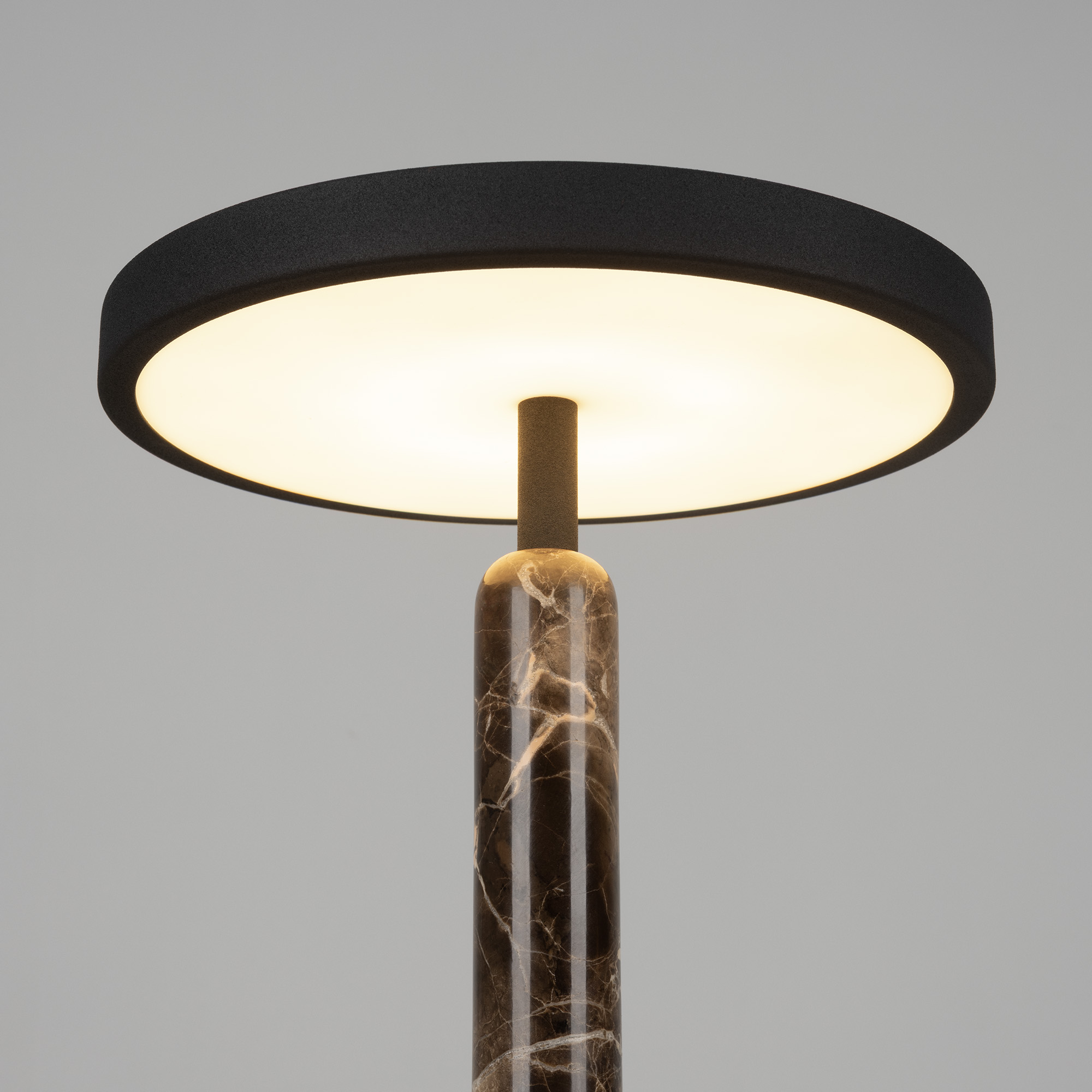 Настольный светильник ALYSS мощностью 5 Вт, с изменяемой цветовой температурой 2700/3200/4000К предназначен для местного декоративного освещения в жилых или коммерческих помещениях. Светильник с широким углом излучения 110 градусов и декоративной вставкой из натурального мрамора оригинально дополнит интерьеры кухни-гостиной или зала кафе, ресторанов. Индекс CRI>92 отвечает за отличное восприятие и передачу цветовых оттенков. Низкая пульсация обеспечивает комфортное освещение без мерцания. Сенсорная кнопка на плафоне позволяет настроить желаемую яркость и цветовую температуру. Пылевлагозащита на уровне IP20 позволяет применять модель внутри помещений, где нет контакта с водой или другими жидкостями. За счет сетевого адаптера, входящего в комплект, светильник быстро подключается к сети 230В.