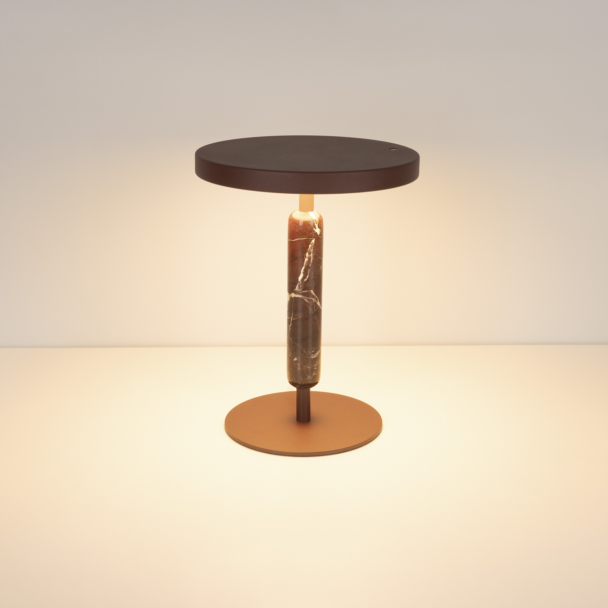 Настольный светильник ALYSS. С изменяемой цветовой температурой 2700/3200/4000К, переключается коротким нажатием на сенсорную кнопку на плафоне, диммирование происходит за счет ее удержания. Мощность 5 Вт, св. поток 195 лм, 39 лм/Вт, CRI>92, угол 110°, напряжение питания 230 В. Корпус из алюминия цвета бургунди, декоративная вставка из мрамора, степень защиты IP20. Размер: диаметр 225 мм, высота 300 мм. Пульсация <1%.