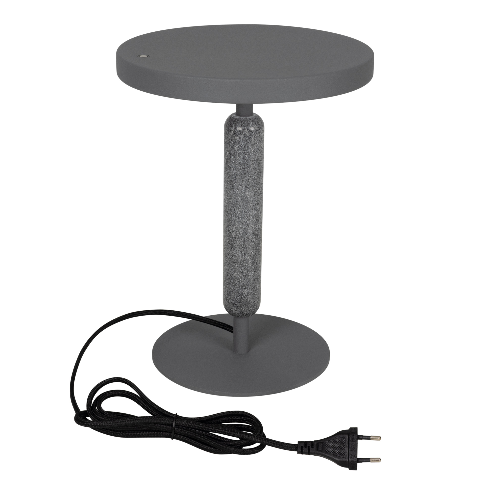 Настольный светильник ALYSS. С изменяемой цветовой температурой 2700/3200/4000К, переключается коротким нажатием на сенсорную кнопку на плафоне, диммирование происходит за счет ее удержания. Мощность 5 Вт, св. поток 195 лм, 39 лм/Вт, CRI>92, угол 110°, напряжение питания 230 В. Темно-серый корпус из алюминия, декоративная вставка из мрамора, степень защиты IP20. Размер: диаметр 225 мм, высота 300 мм. Пульсация <1%.