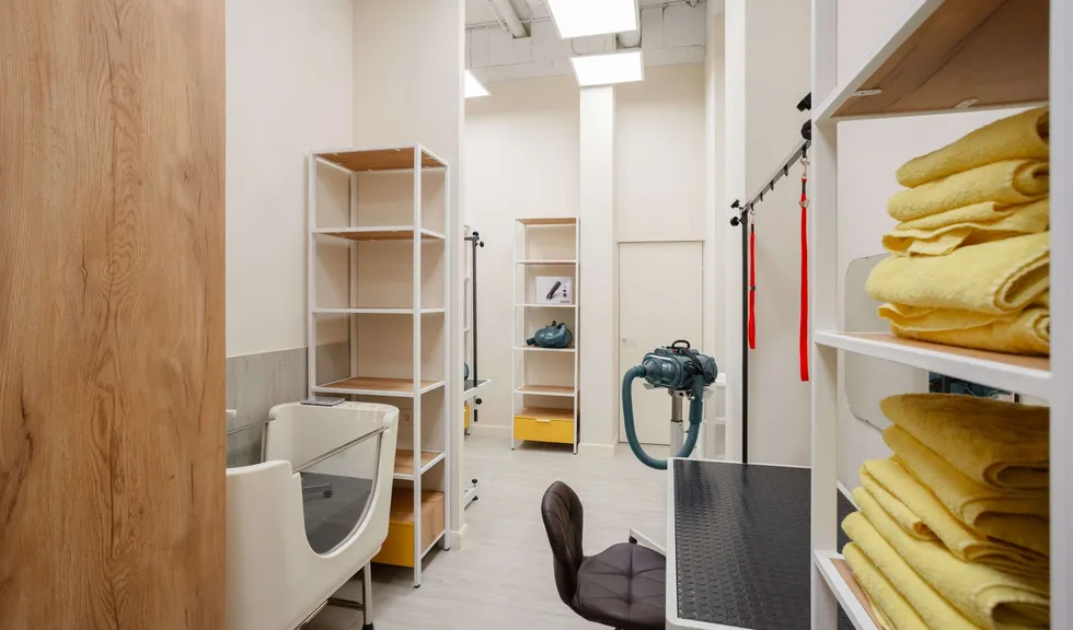 Задача: создать практичный, стильный и комфортный интерьер для питомцев, их владельцев и персонала на площади 78 м2.
