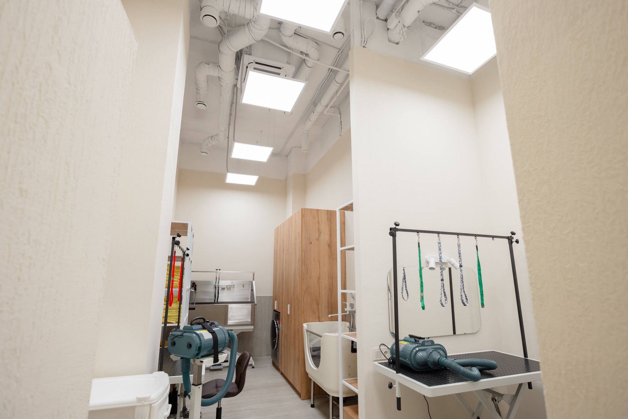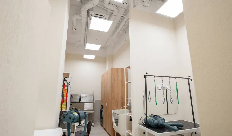 В санузле установили светильники GRIGLIATO и подсветку зеркала, тумбы и ниши в стене. А создать отличную видимость и комфортные условия мастерам, которые проводят груминг-процедуры в рабочем зале, помогли панели INTENSO. «У них торцевая засветка, отличные световые характеристики и равномерное распределение света», — подчеркнула Дина.