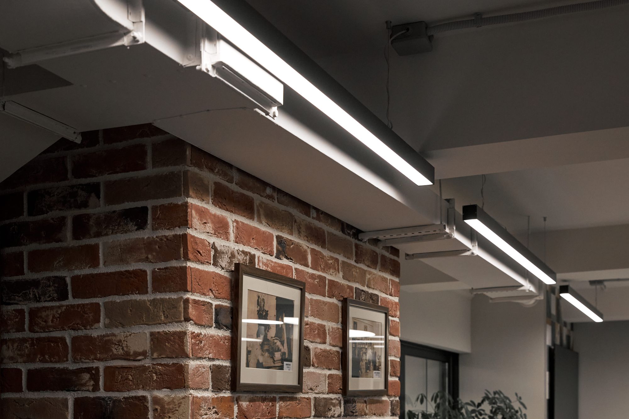 При выборе источников света важно было учитывать архитектурные особенности здания. Из-за высоких потолков и потолков с перекрытиями предпочтение было отдано подвесным светильникам. Чтобы создать бодрящую и в то же время деловую атмосферу, выбор был сделан в пользу дневного оттенка белого свечения (4000 К) во всех пространствах.