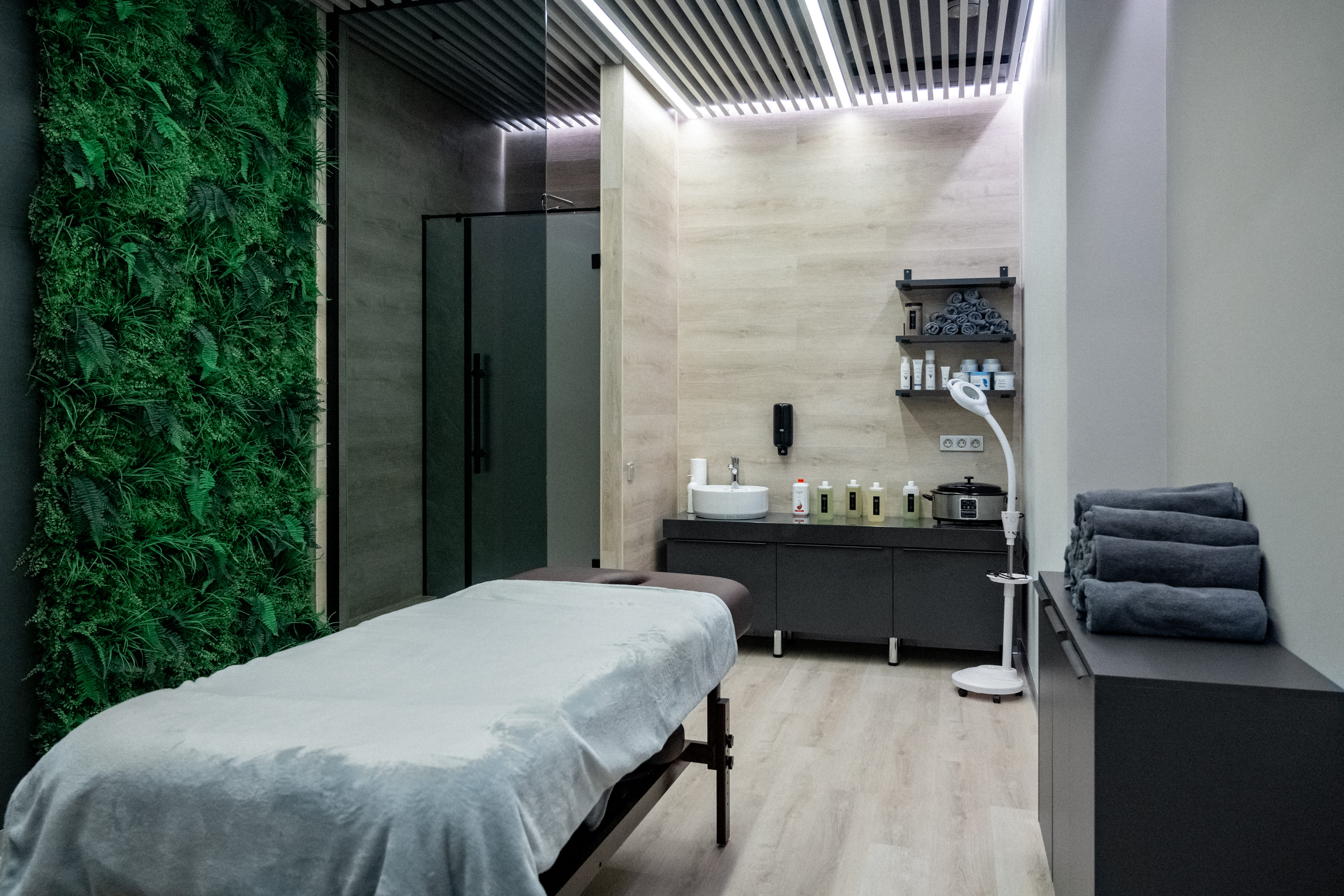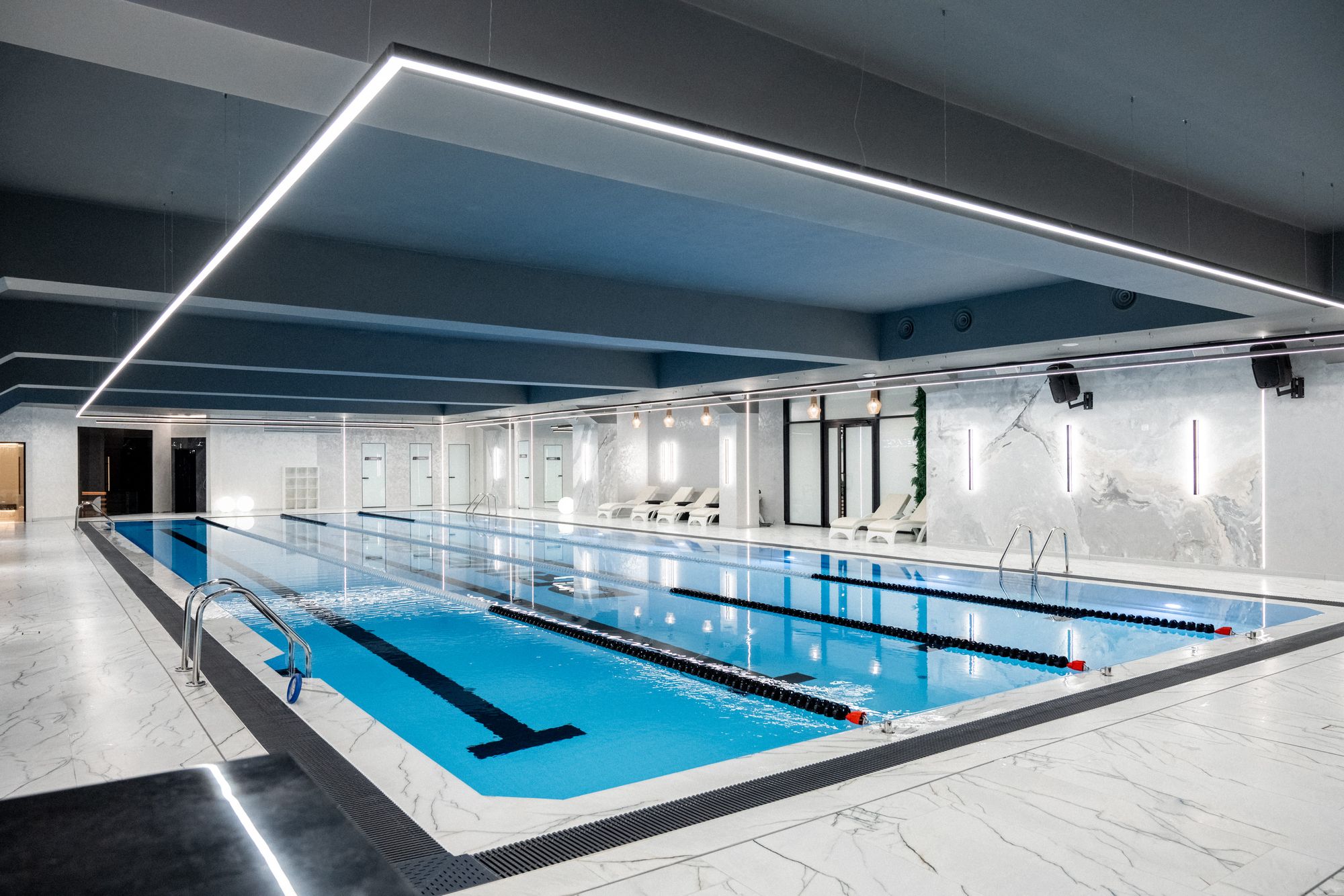 Какой бы креативной не была концепция освещения — управление столькими источниками света должно быть эргономичным и надежным. Диммер SMART позволяет регулировать яркость линий света. В местах, где в любой момент необходимо сменить световое оформление, — в групповых залах и массажных кабинетах — установлены сенсорные панели управления Sens SMART. Данная панель сохраняет до 3 световых сценариев и может управлять 4 световыми зонами.