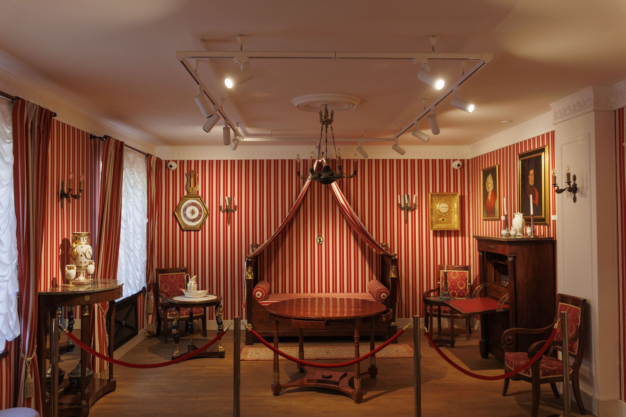 Основу экспозиции музея Тильзитского мира составляют произведения искусства и предметы быта эпохи ампир. Позолота, массивная мебель, античные и африканские мотивы — все это сливается в роскошный и величественный интерьер.