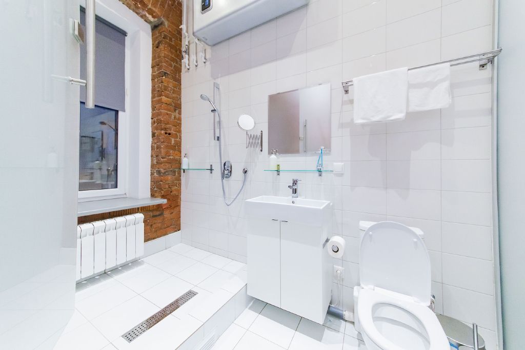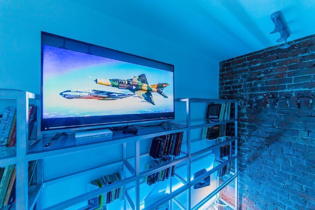 Светодиодная подсветка и светодиодное освещение в квартире-студии дополняет интерьер, выполненный в авиа-тематике.