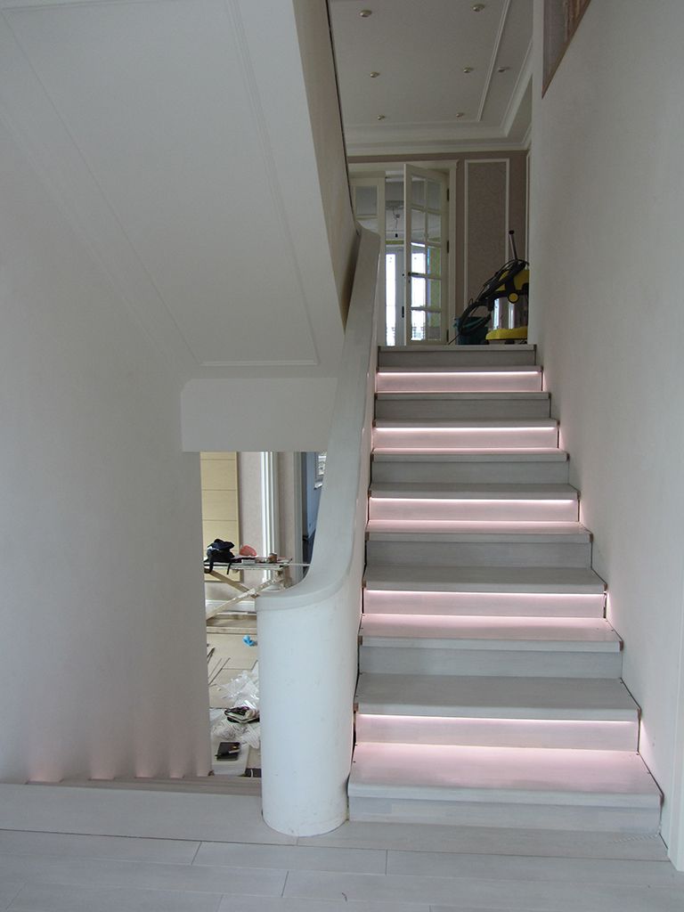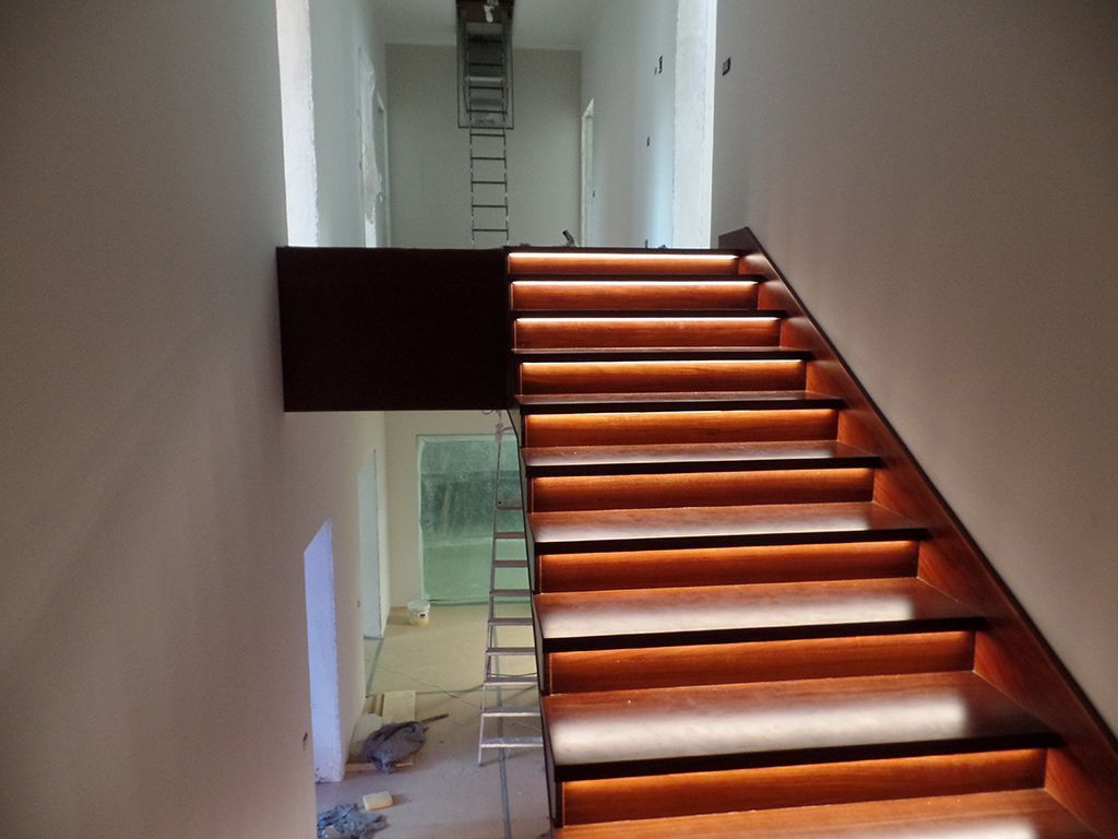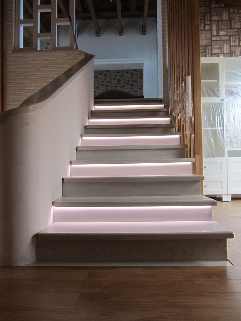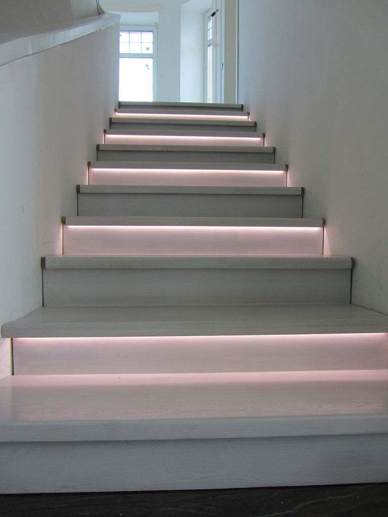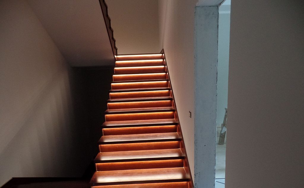 В данном проекте приведено несколько примеров светодиодной подсветки лестниц.