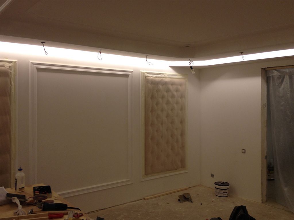 Блоки питания светодиодных лент были скрыты в специально сделанных нишах и лючках, поэтому с обслуживанием блоков трудностей не возникнет. Монтаж подсветки всех помещений был выполнен всего за полдня.