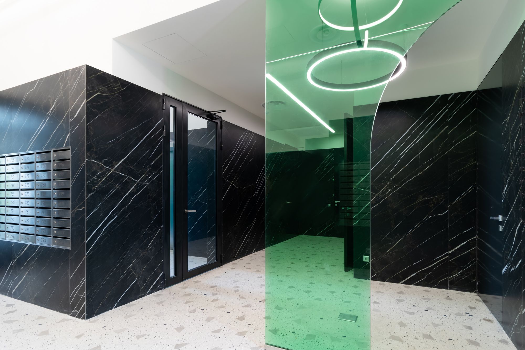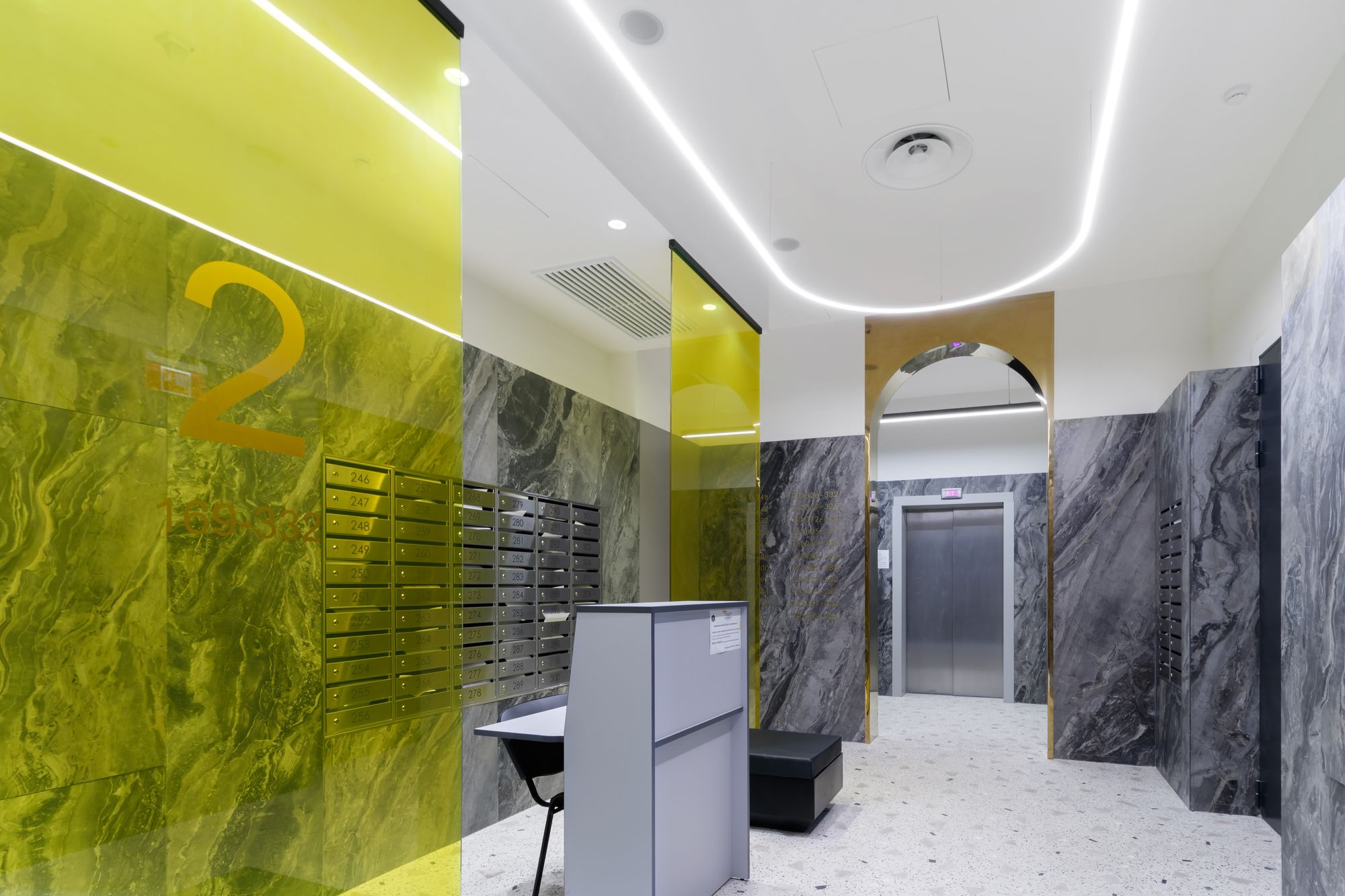 Проект освещения премиум-класса, в котором свет преображает пространство и создает особую световую атмосферу даже в местах общего пользования: коридорах, холлах и на лестничных пролетах.